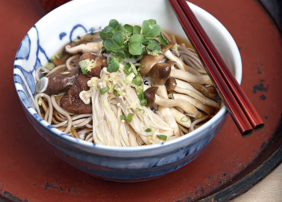 Recipe for Soba Soup with Mushrooms by Laure Kié