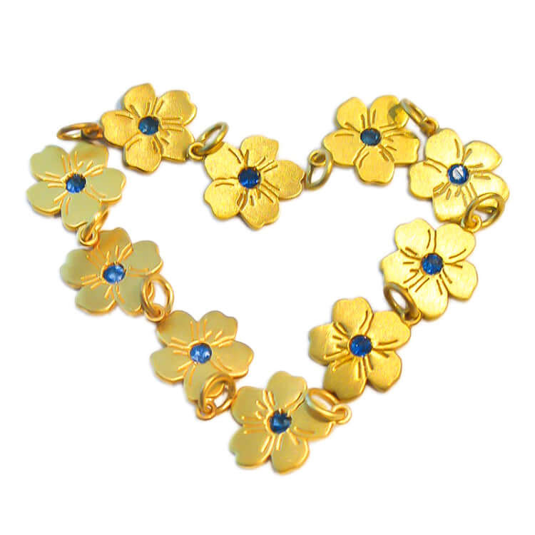 Un délicat bracelet à motifs de myosotis en soutien aux femmes des régions sinistrées
